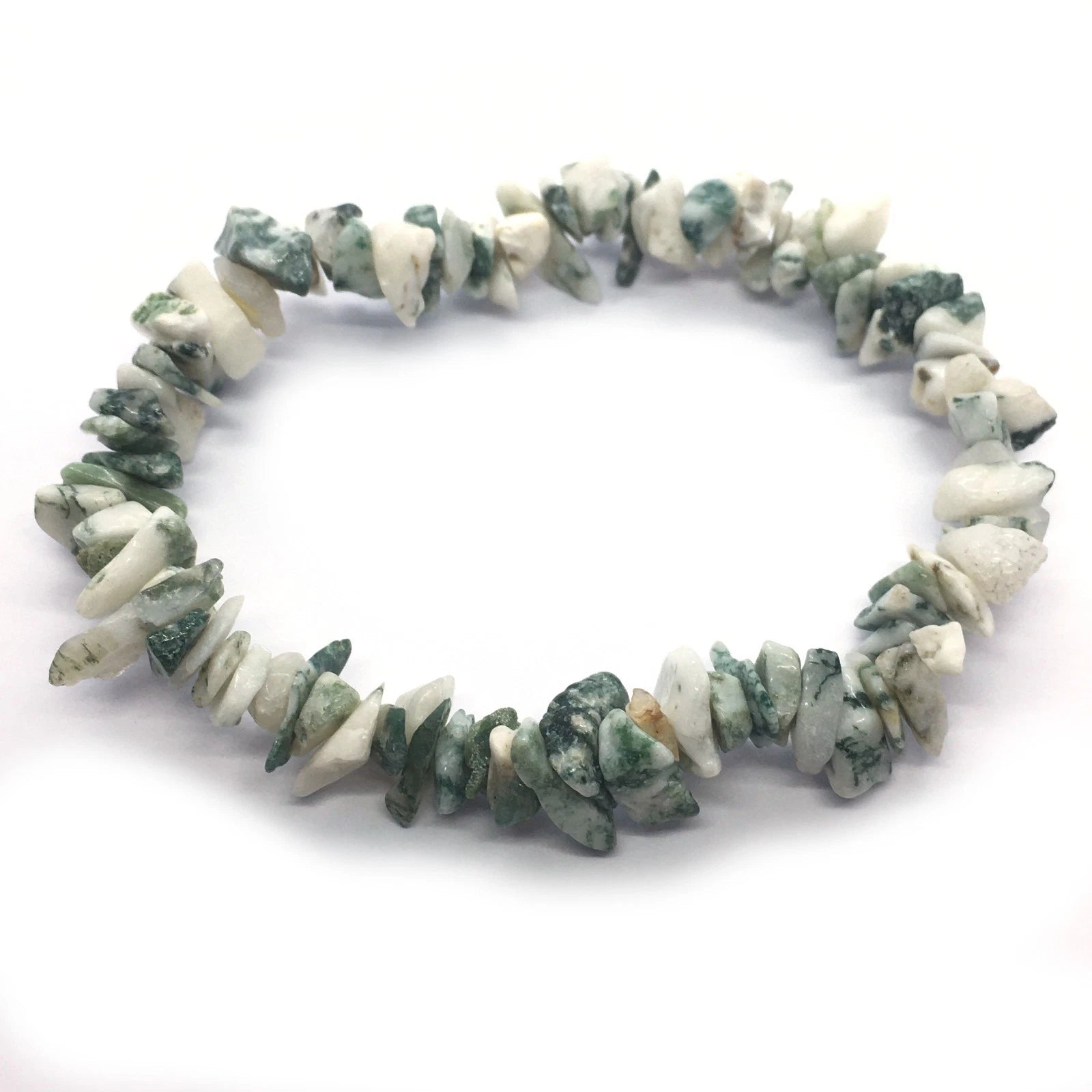 Discover the energy of Moss Agate, the Stone of Abundance. Encourages tranquility and emotional balance; connected with nature and prosperity. Thoughtfully handcrafted with genuine crystal chips, this bracelet brings a refined, meaningful touch to everyday wear.